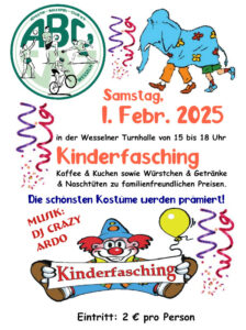 Auch im diesem Jahr veranstalten wir wieder das beliebte Kinderfasching.